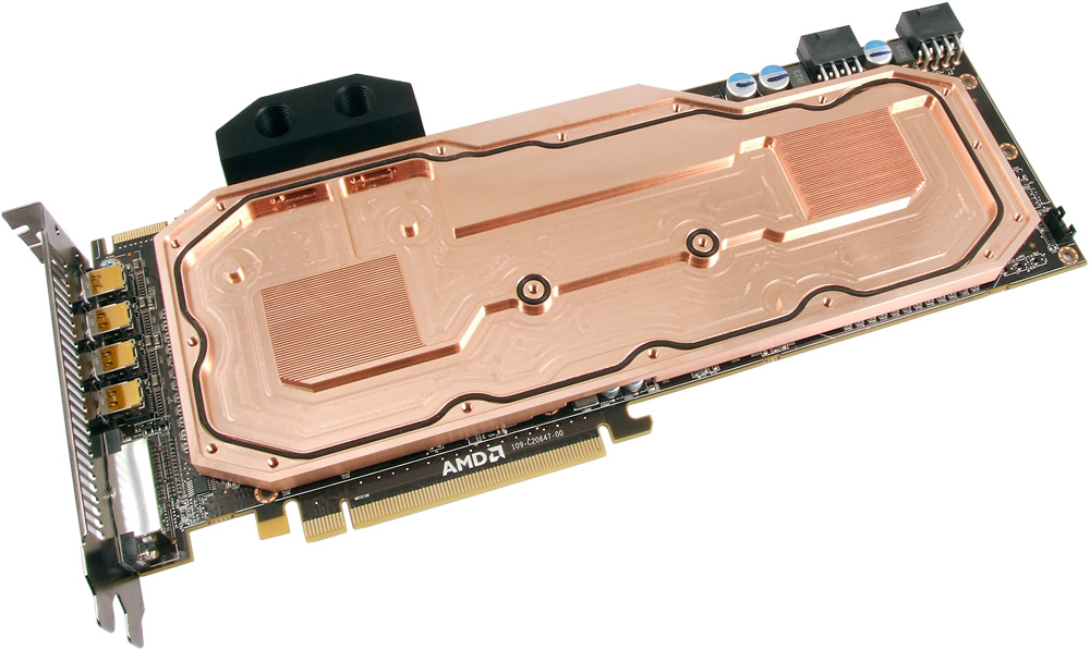 Für AMDs Grafikkarte schicken wir den aquagratix HD6990 ins Rennen und seitens Nvidia ist es der aquagrafx GTX590. Beide Komplettkühler decken alle relevanten Bauteile wie Grafikprozessor, RAM und Spannungswandler ab. Als Besonderheit werden bei beiden Kühlern die GPUs parallel vom Wasser durchflossen. Hierzu wurden die feine Kühlerstruktur oberhalb der Grafikprozessoren so angepasst, dass sich das Wasser gleichmäßig verteilt. In Tests ergeben sich so zwischen den GPUs nur geringe Temperaturunterschiede von 1 bis 2 Grad.