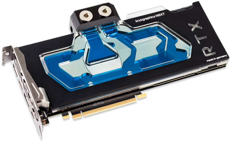 Full-Cover und komplette Bodenplatte aus Kupfer für alle Hot-SpotsMit der NEXT-Generatiion der kryographics Serie wurden Funktion und Design deutlich weiterentwickelt. Der Wunsch nach einem Full-Cover Kühler wurde berücksichtigt und so deckt der massive Kupferboden nahezu vollständig die gesamte Karte ab und kühlt alle von Nvidia in der technischen Dokumentation als signifikante Wärmequelle dargestellten Bauteile.