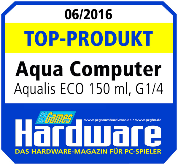 Beim Durchfluss platziert sich der aqualis ECO 150 ml im oberen Feld und sichert sich mit dem als gut bewerteten Preis-Leistungs-Verhältnis am Ende den Top-Produkt Award. Den gesamten Test können Sie im PCGH Magazin 06/2016 nachlesen, welches noch bis 31.05.2016 im Handel ausliegt.