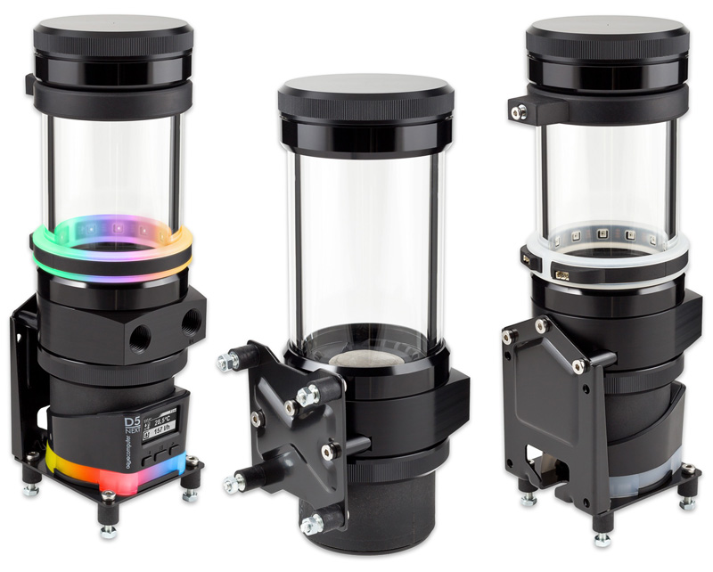 Die ULTITUBE D5 Ausgleichsbehälter werden von Aqua Computer ab Werk auch direkt mit einer D5 NEXT Pumpe oder eine D5 PWM Pumpe angeboten.